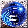 Description: a large blue marble. text: "today I am a small blue thing"