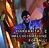 Description: hawaiian shirt!harvey. text: "margaritas & hallucinations for all!"